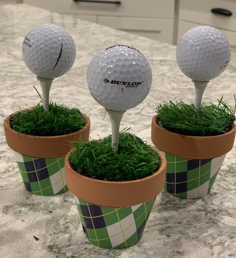 Of course any golf themed table would not be complete without some loose golf balls and tees sprinkled around.