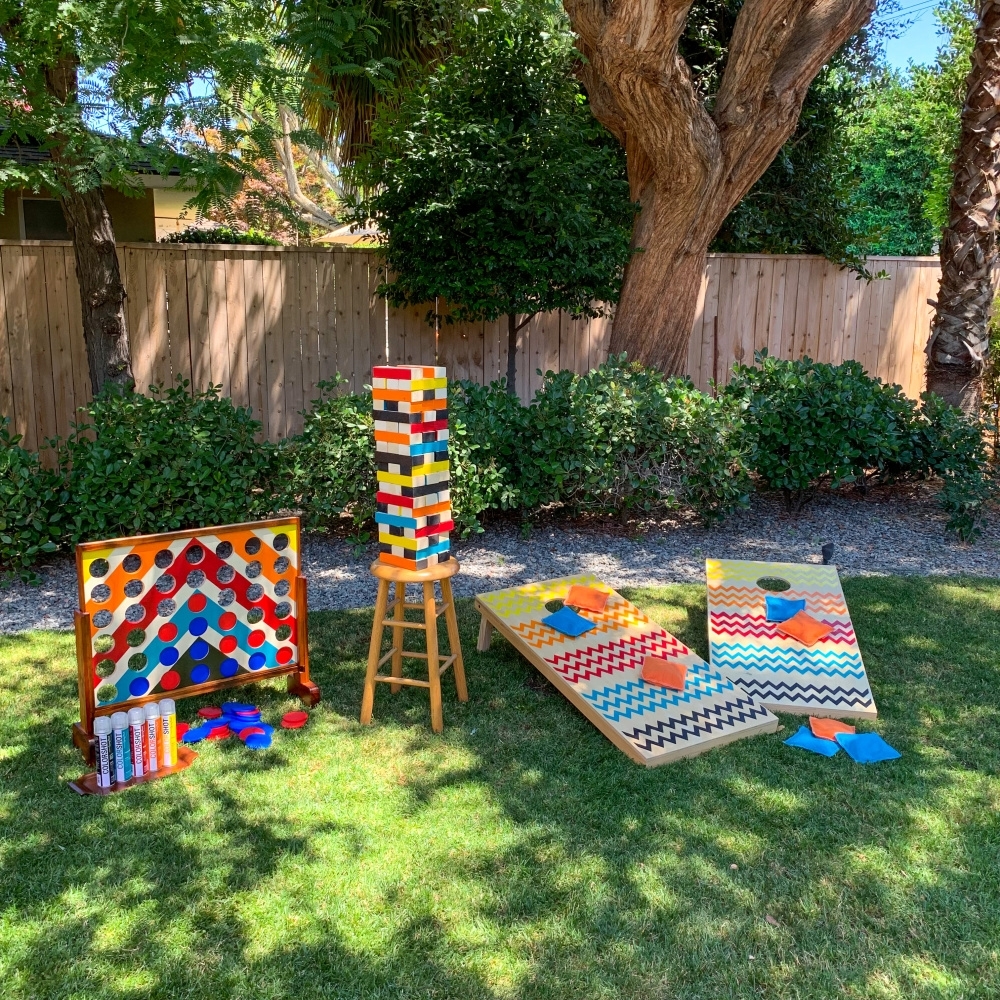 To keep your guests immersed in your theme try entertaining them with a variety of outdoor games and activities that embrace the spirit of summer and camping. Set up lawn games like cornhole, giant Jenga, or ring toss for friendly competition and laughter. Invite guests to gather around the fire pit for storytelling, sing-alongs, or a round of acoustic guitar music. For a creative twist, organize a DIY s’more decorating contest where guests can showcase their artistic skills by assembling the most elaborate and delicious s’more creations. Provide prizes for the winners, such as camping gear, gift cards, or gourmet s’mores kits.